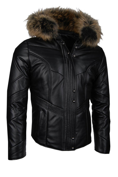 Damen-Lederjacke, gefüttert, feinstes Lamm-Nappa, schwarz mit abnehmbarem Fuchsfell